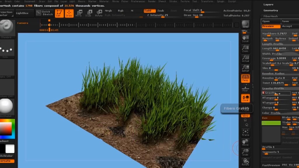 - Expand FiberMesh in the Tool panel (at most right) and click on Lightbox>Fibers